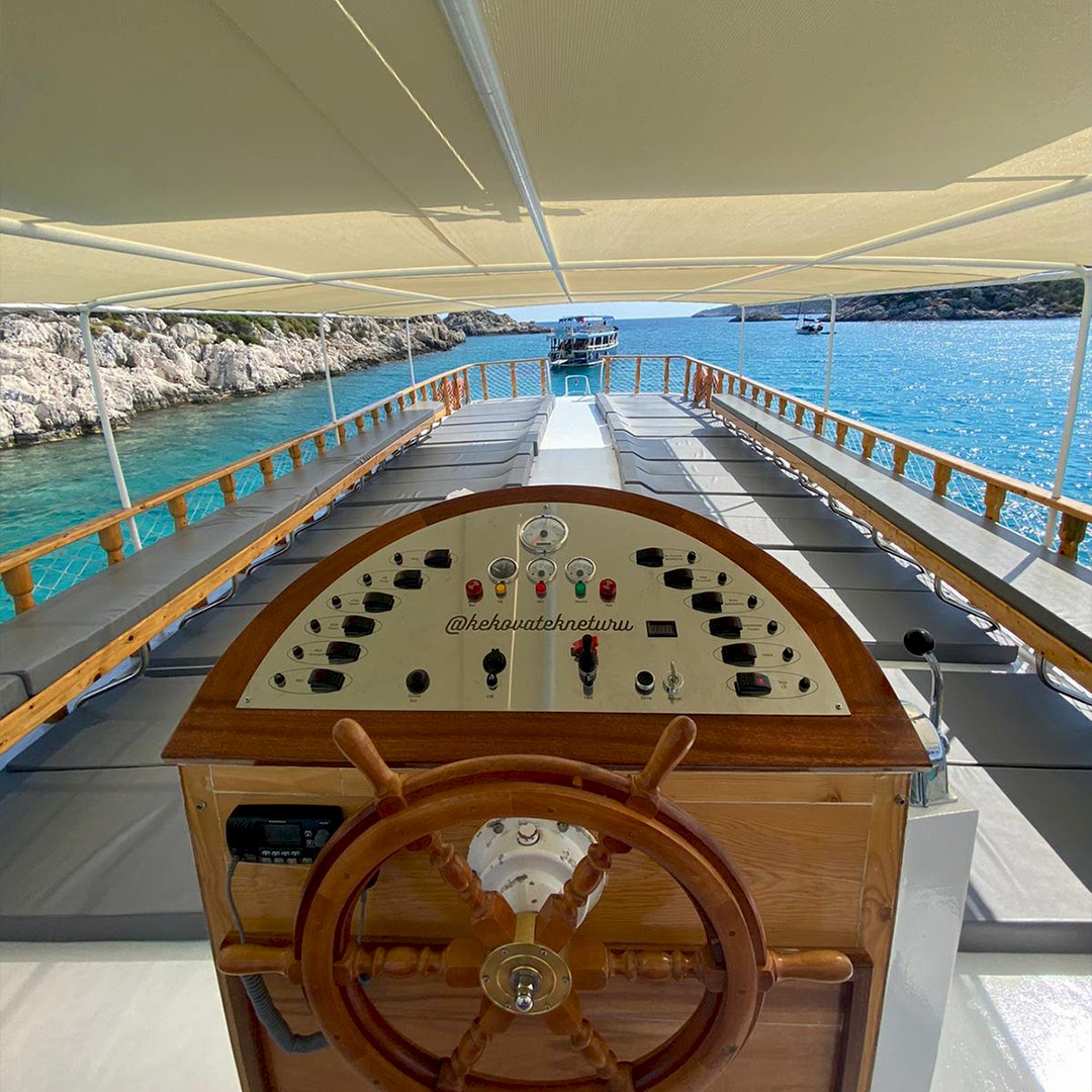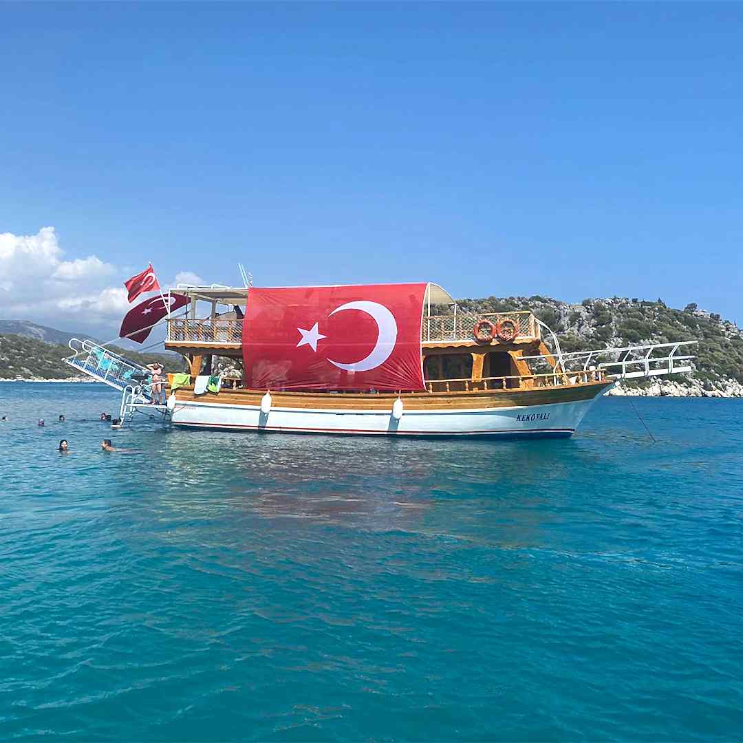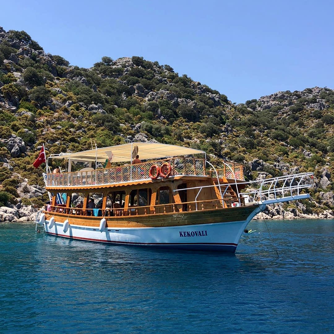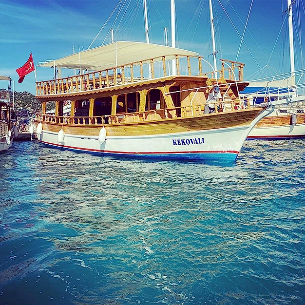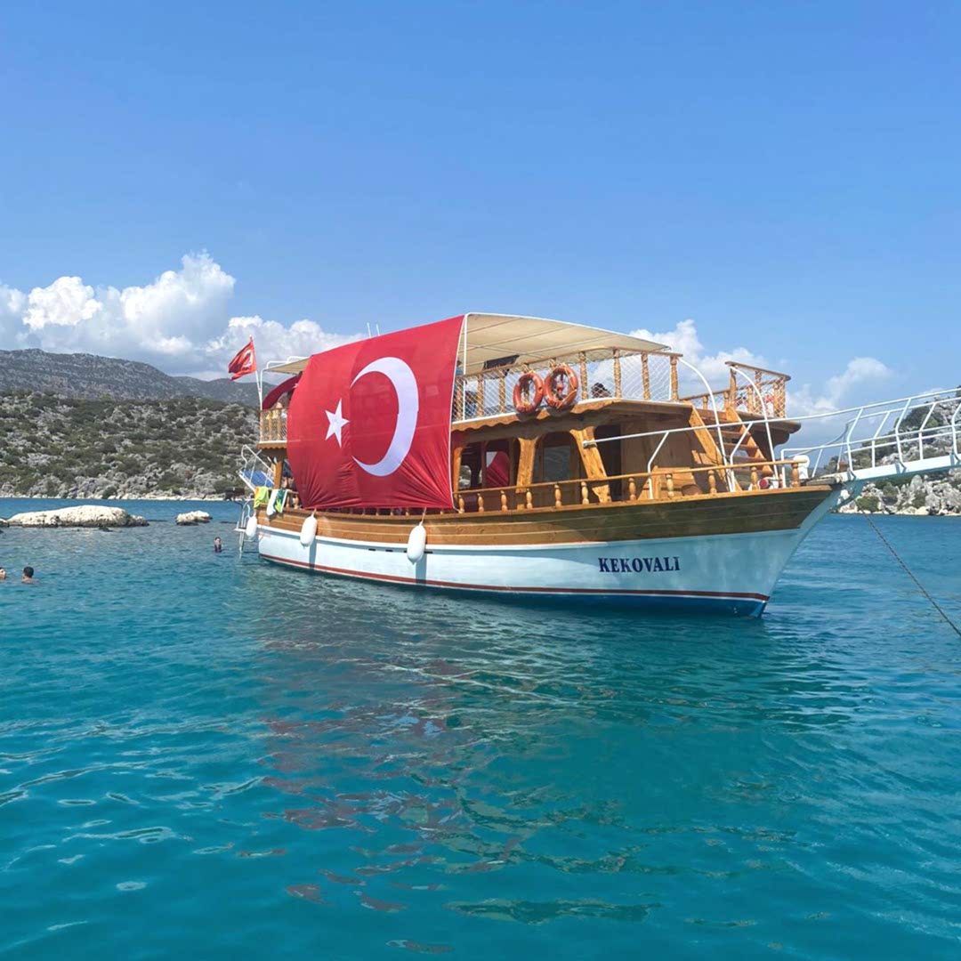 Kekovalı Teknesi ile paylaşımlı grup turu yapabilirsiniz. 45 kişi kontenjanlı tekne turlarımız için günübirlik bilet alabilirsiniz.